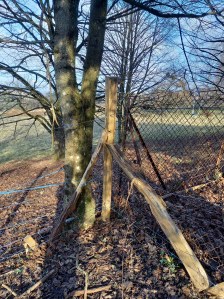 La première étape est de délimiter et clôturer l’ensemble de l’espace destiné à accueillir le troupeau. Pour cela, il faut tout d’abord planter les 220 piquets nécessaires. L’utilisation de la masse et de l’enfonce piquets est une option, mais l’aide d’un petit engin peut-être bien reçu… ! Un voisin à accepter de nous aider avec sa mini-pelle pour enfoncer les piquets restants…. et ça n’a pas été de trop.