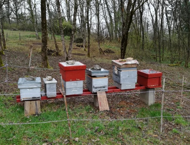 Les ruches de Claire Combe ont été données par Eric, apiculteur bisontin, à Cell, apiculteur albanais réfugié en France depuis plusieurs années maintenant. Les abeilles participent à l’entretien de la biodiversité et le miel récolté est en partie conserver par Cell et en partie vendu au profit de Claire Combe. Tout le monde y trouve son compte !